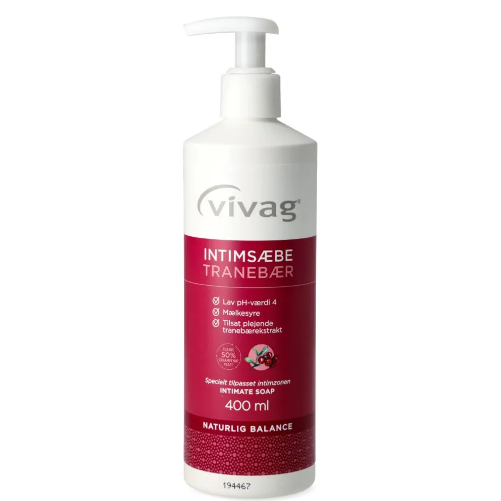 Intimsæben indeholder mælkesyre og har en lav pH-værdi på 4, som er med til at beskytte mod irritation og udtørring af huden.