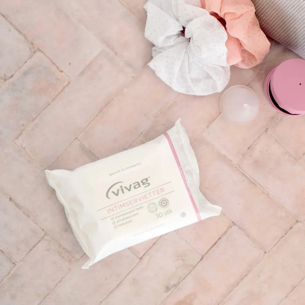 Daglig velvære: Vivag Intimservietter 30stk er skånsomme ogekstra milde, velegnet til vask af den intime zone. Servietterneer dermatologisk testet, parfumefri og fugtighedsbevarende.Intimservietterne har en lav pH-værdi specielt tilpasset underlivet.Giver dig en forfriskende og ren følelse. Intimservietterneer perfekt til at tage med på rejser og kan benyttes ved menstruationeller let urininkontinens.