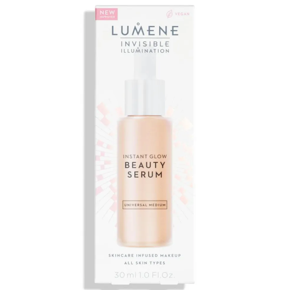Lumene Instant Glow Beauty Serum er tilført nordisk pileurt, fugtgivende nordiske alger og E-vitamin, der fugter, lysner synligt hudens naturlige udstråling.