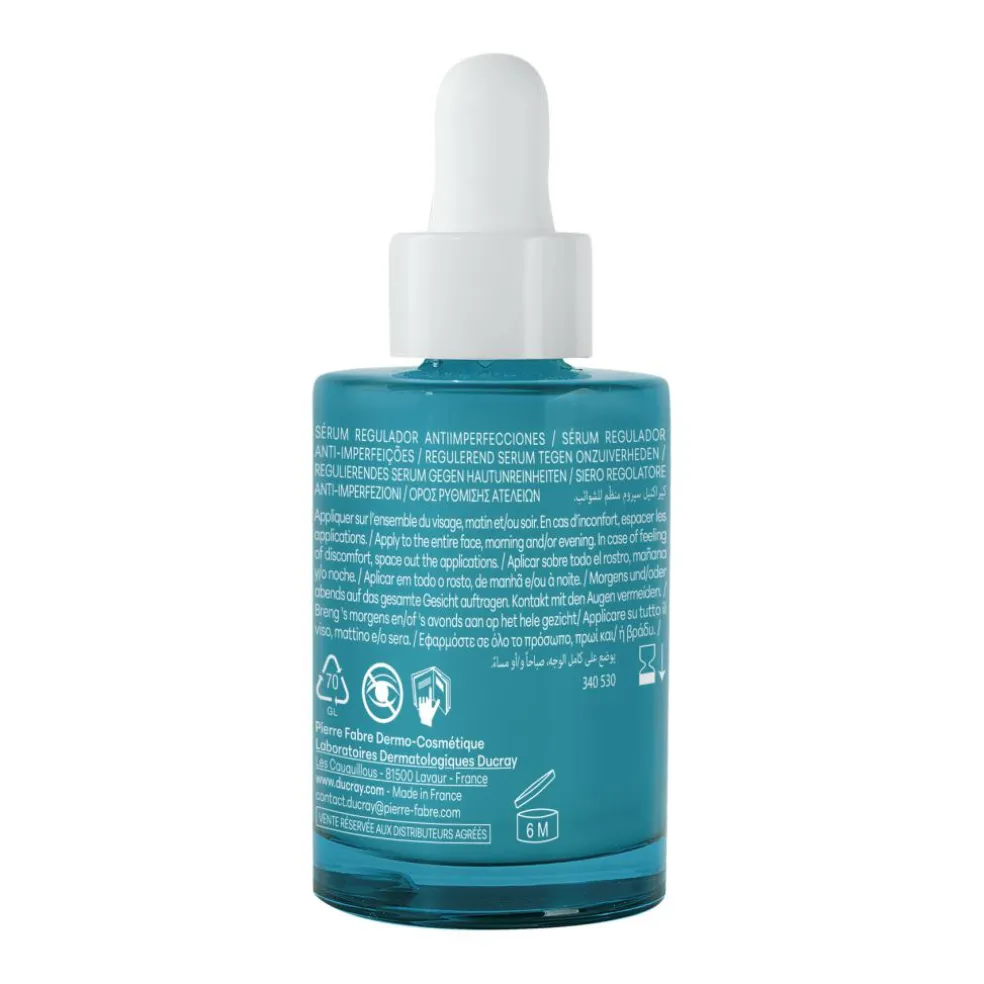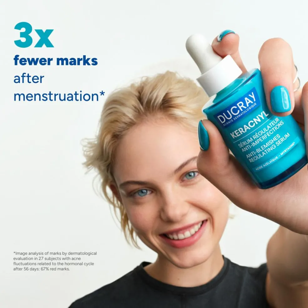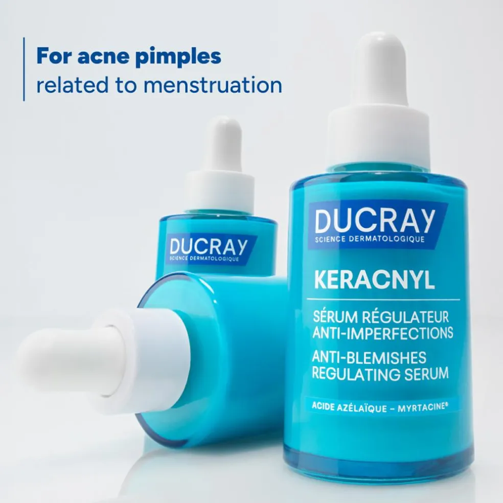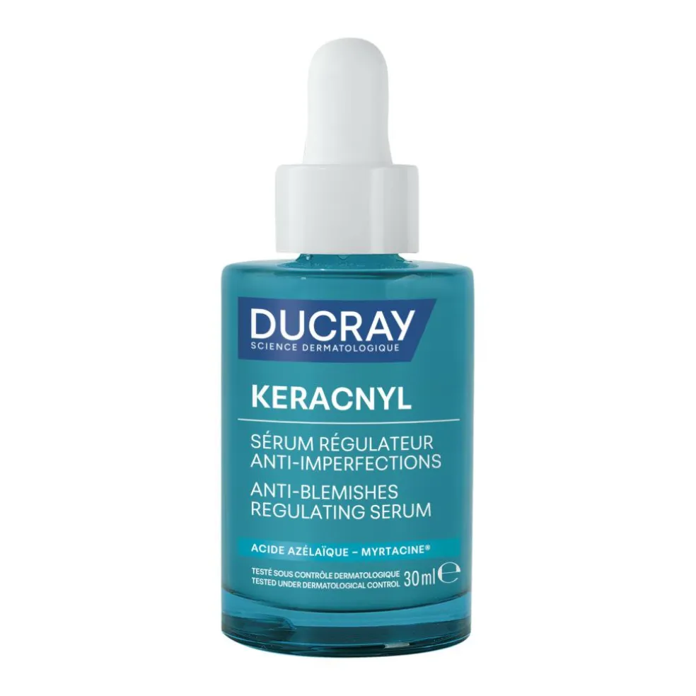Keracnyl Anti-Imperfection Regulating Serum fra Ducray regulerer urenheder, tilbagevendende udbrud og vedvarende mærker forværret af hormonelle cyklusser, stress og kost.