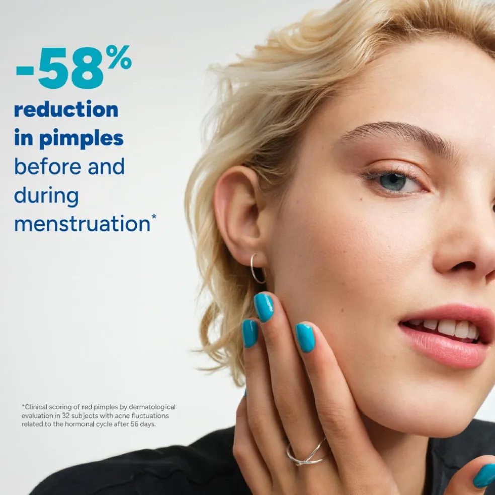 • Serum, der regulerer bumser og tendens til urenheder før, under og efter menstruation.