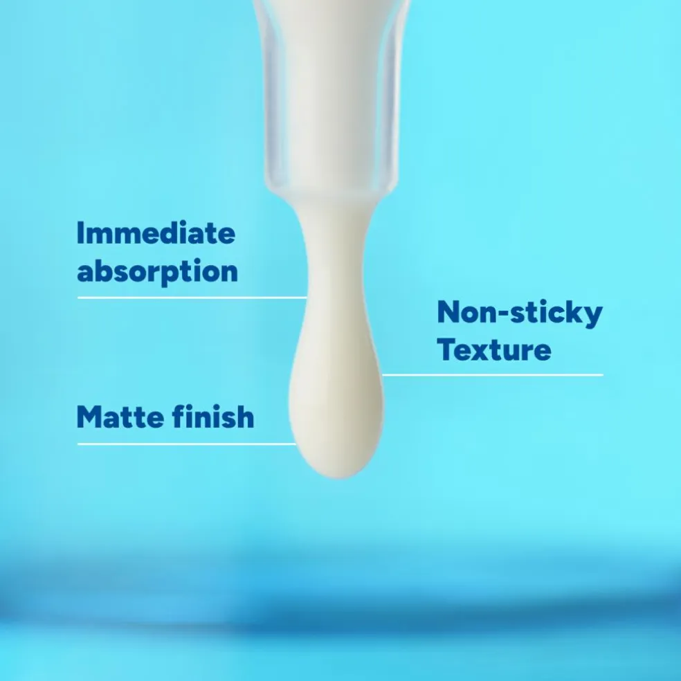 Den lette og flydende konsistens absorberes hurtigt uden at efterlade huden klistret og giver en øjeblikkelig fugtgivende matterende effekt, hvilket gør produktet til en perfekt makeup-base.