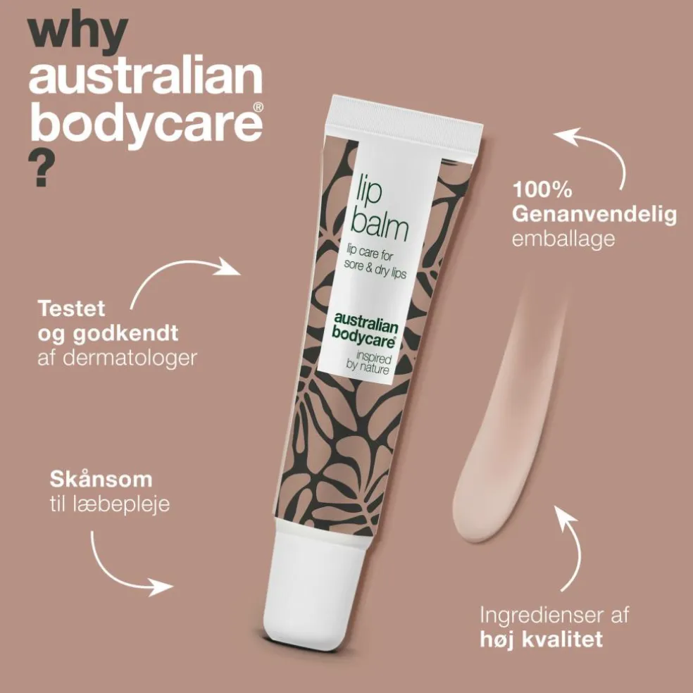 Produktet virker fugtgivende og lindrende på svie, ømhed og irritation i læben. Huden på og omkring læberne er fin og tynd, og det er derfor vigtigt, at du holder den velplejet og beskyttet.