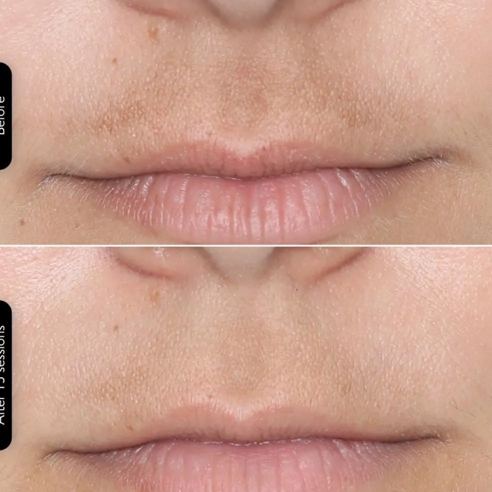 - Efter: Efter endt behandling kan masken fjernes. Din hud er nu stimuleret, og du kan forvente at se en mere strålende ansigtskulør og mærke en synligt forbedret hudtekstur. Fortsæt din sædvanlige hudplejerutine.