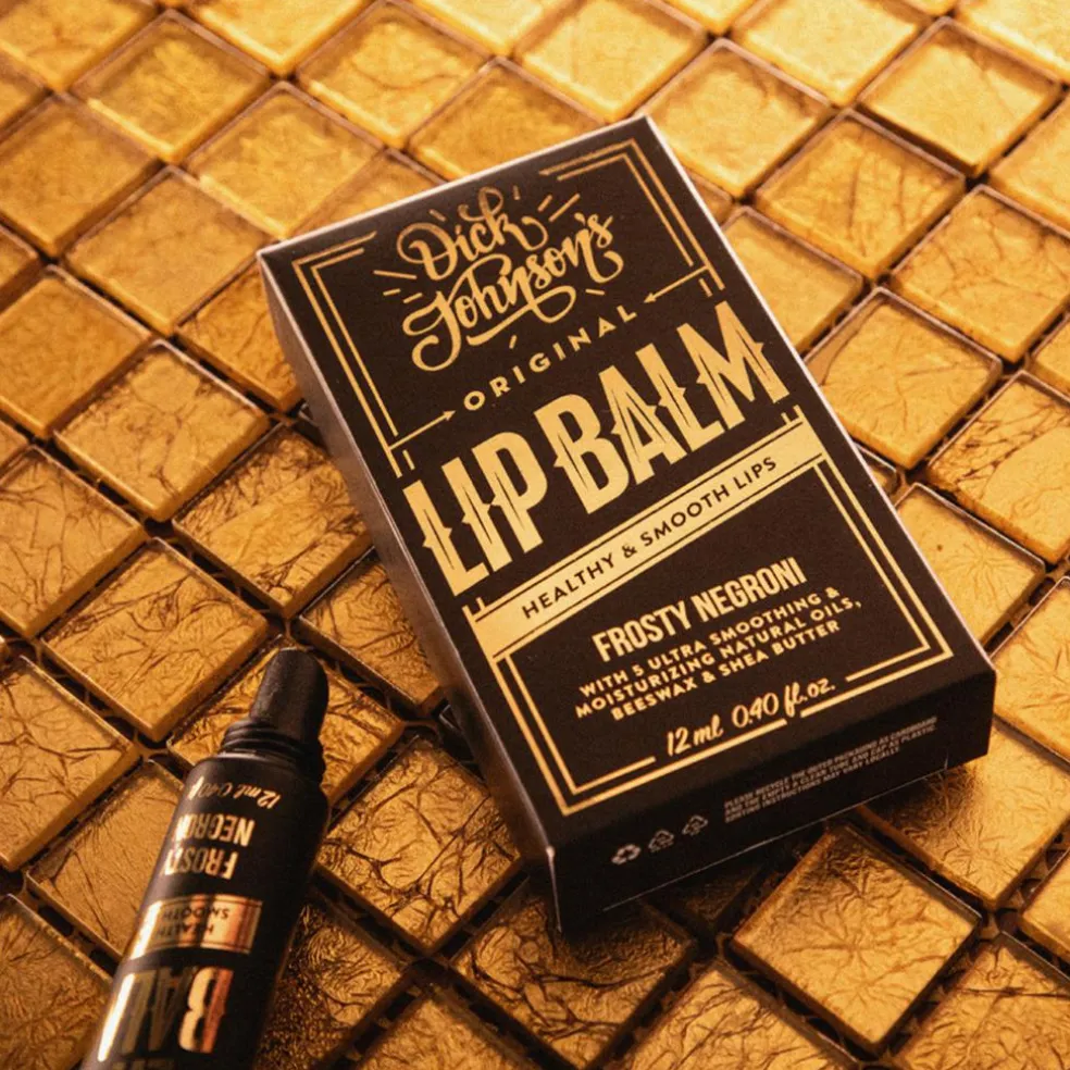 Dick Johnson’s Frosty Negroni sikrer bløde og fugtige læber når som helst og hvor som helst. Den bløde balsam leveres i en praktisk tube med en doseringsspids, der gør påføring nem og jævn.