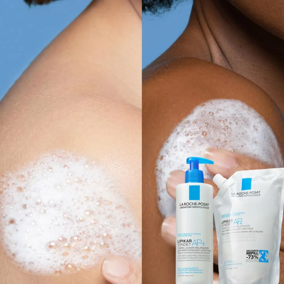 - Tryk en lille mængde LIPIKAR SYNDET AP+ ud i håndfladen