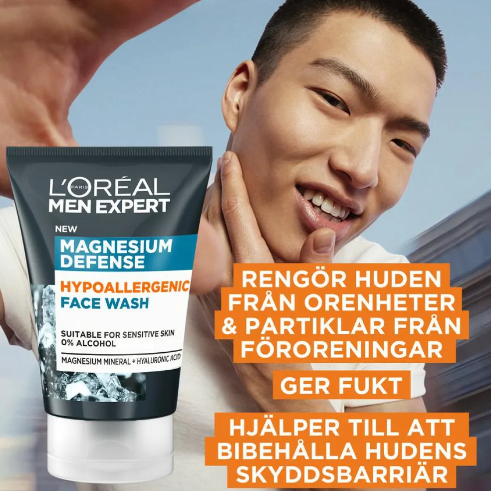 Gelen bevarer hudens naturlige beskyttelsesbarriere. Men Expert Magnesium Defense Hypoallergenic Face Wash er testet under dermatologisk kontrol samt på sensitiv hud.