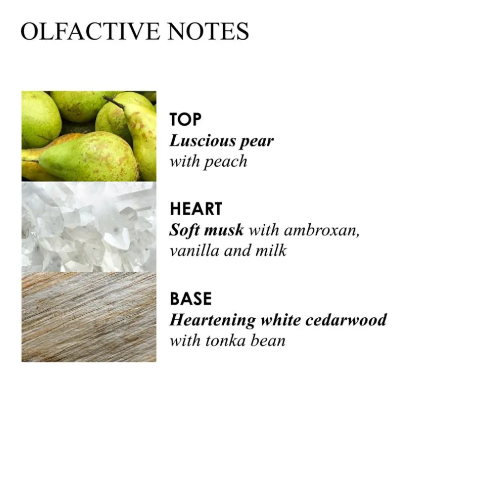Denne lette, luksuriøse og fugtgivende bodylotion indhyller dig i blomster- og musknoter af subtil mælk, varm musk og cremet tonkabønne – en velduftende og beroligende følelse, der føles som et blidt kærtegn på hudenog ansvarligt produceret.