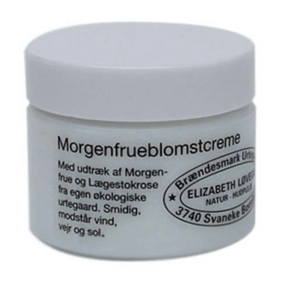 Morgenfrueblomster (Calendula) og blade af Lægestokrose heler, dulmer og genopbygger. Morgenfrue er blid, helende og revitaliserende for alle hudtyper.Lægestokrose giver huden blødhed. De fineste olier – oliven, tidsel og ricunis – belønner huden med næring og smidighed. Lanolin beskytter mod såvel sol som frost.