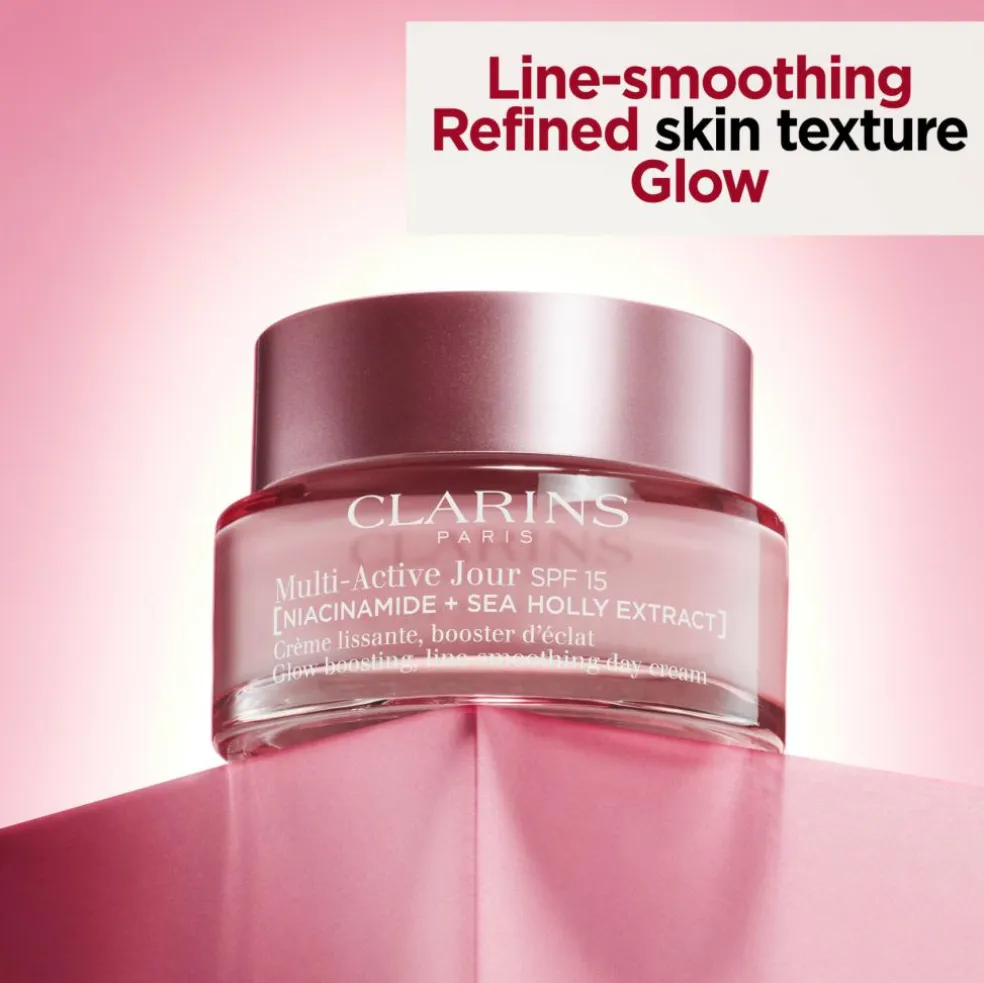 - Opvarm en lille mængde Multi-Active Day Cream mellem håndfladerne.