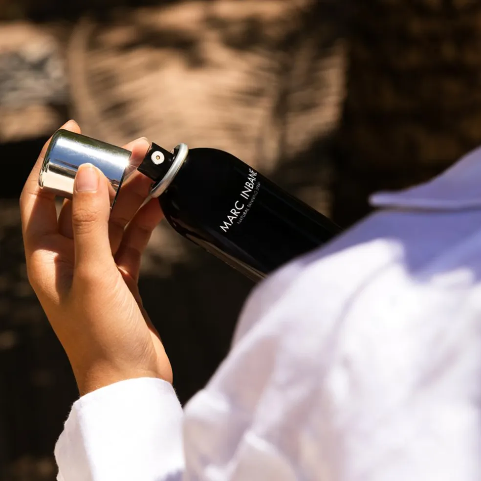 Derfor er produkterne udviklet med en firedobbelt tanningteknologi med en lavere DHA for at mindske udtørring i huden, som også gør at du ikke vil opleve en orange farve. Samtidig er det tilsat en masse veganske og naturlige ingredienser for at vedligeholde og understøtte den perfekte self-tanning oplevelse fra Marc Inbane. Anvendelse: Spray ca. 30 cm fra huden med hurtige, korte bevægelser. Tørretid 10 -15 minutter, men brug evt. en hårtørrer for at fremskynde tørringen. Efter 3 timer er produktet fuldt indarbejdet, og du kan igen tage et brusebad, motionere osv. Tip: Farven kan intensiveres med flere lag. Vent herefter 3 timer efter påføring af det første lag og rens/vask derefter huden. På disse 3 timer har huden helt absorberet produktet, og man vasker kun dét lag af, som huden ikke længere var i stand til at absorbere. Efter denne første afrensning vil du se det reelle første gangs selvbruner resultat. Hvis du finder det for let, kan du påføre produktet igen.