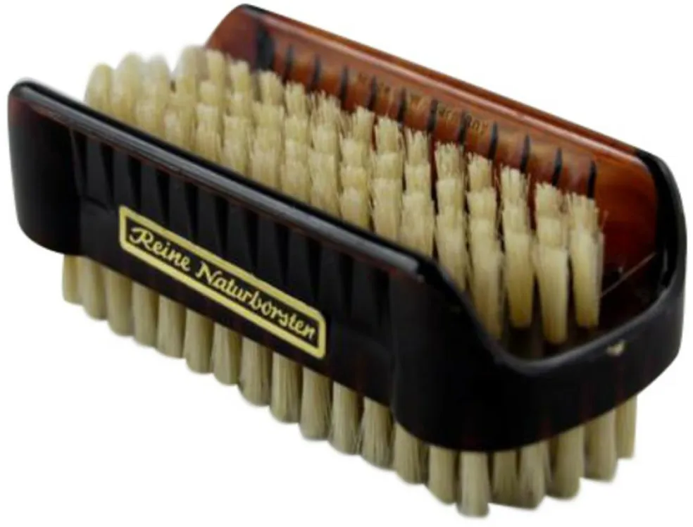 Neglebørste med dobbeltsidet. 8 cm lang.
