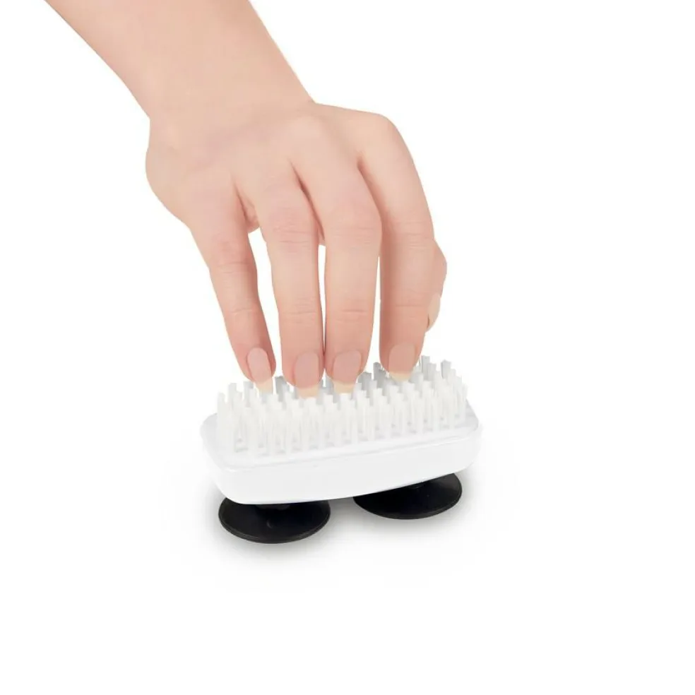 Neglebørste med praktiske sugekopper i bunden, der gør det muligt at den står stabilt.