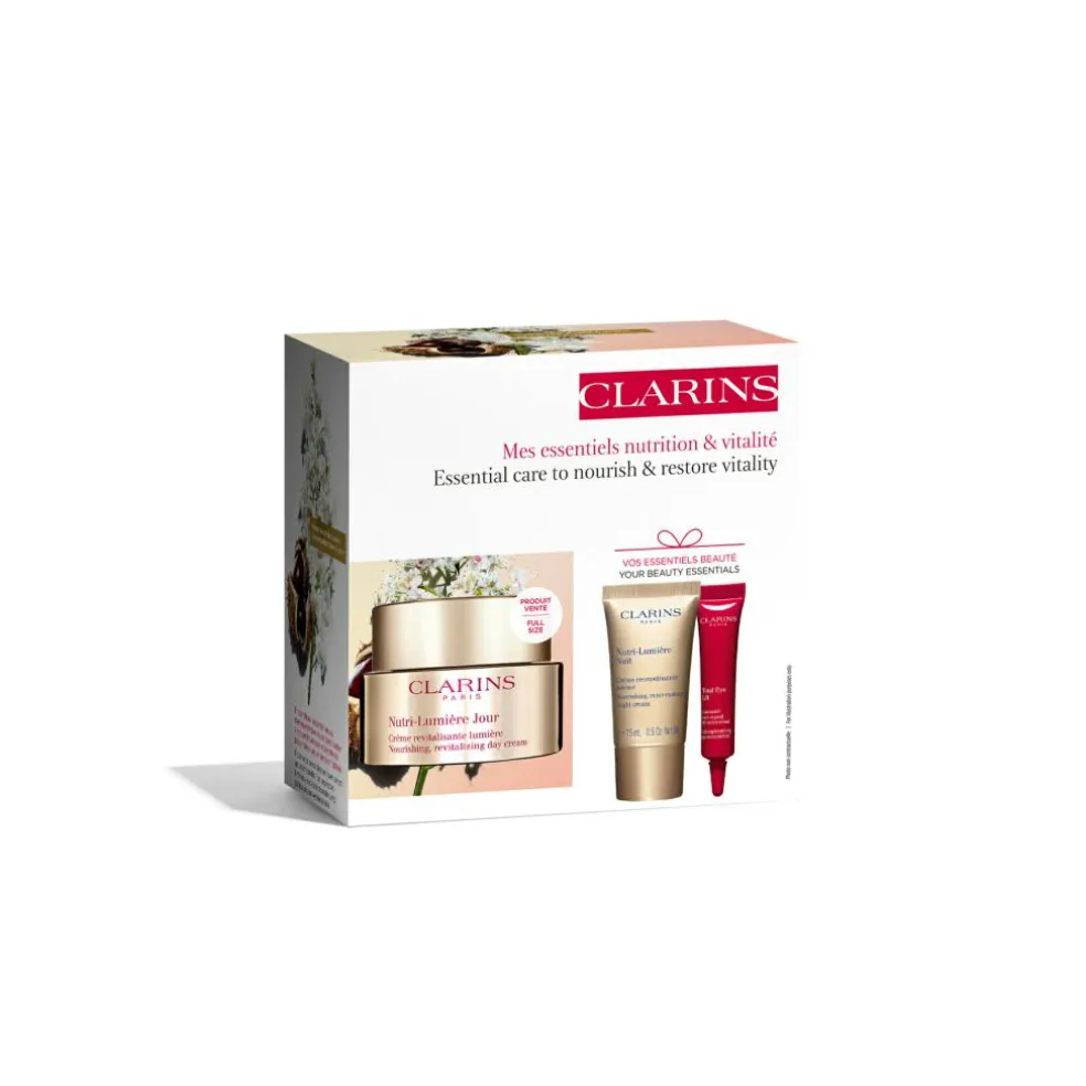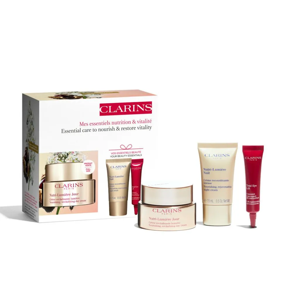 Foruden Nutri-Lumière dag- og natcreme indeholder gaveæsken også Total Eye Lift, en effektiv øjencreme med løfteeffekt specielt udviklet til at genopbygge og pleje huden i øjenområdet, mens den hjælper til at udglatter fine linjer og ’kragefødder’. Velegnet til følsomme øjne og brugere af kontaktlinser.”