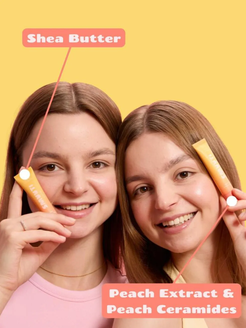 Læbemasken indeholder ferskenekstrakt og ferskenceramider for at nære læberne.