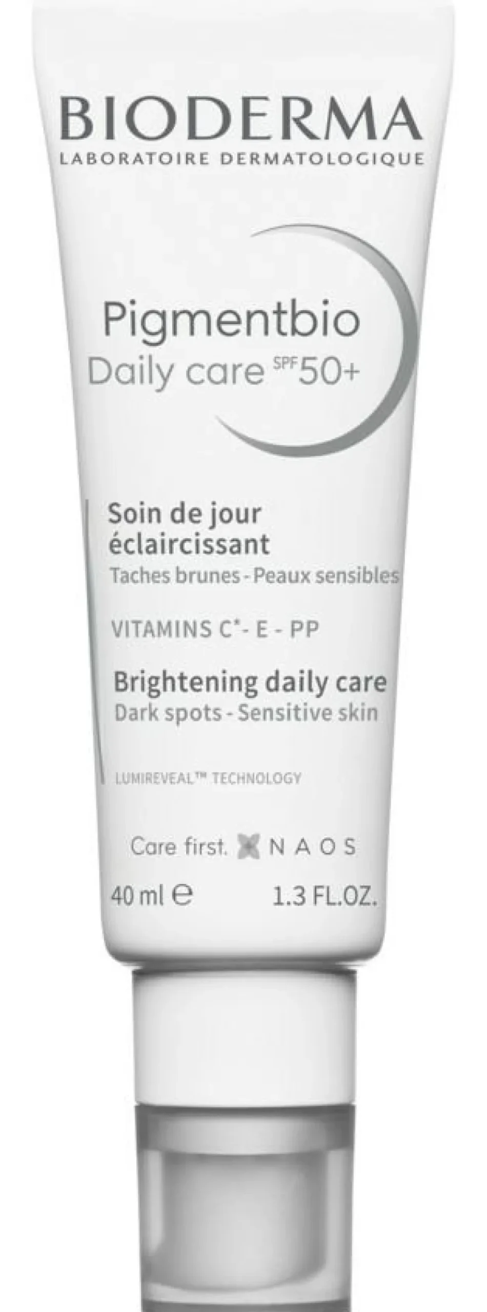 Pigmentbio Daily care SPF50+ indeholder LUMIREVEAL™ TECHNOLOGY, inspireret af dermatologers førende behandlinger, der hjælper med at genoprette huden og reducere/modvirke pigmentforandringer. En uensartet hudtone er ofte forårsaget af overdreven soleksponering, og derfor er meget høj solbeskyttelse vigtig. Produktet har høj tolerance og er testet under dermatologisk kontrol.