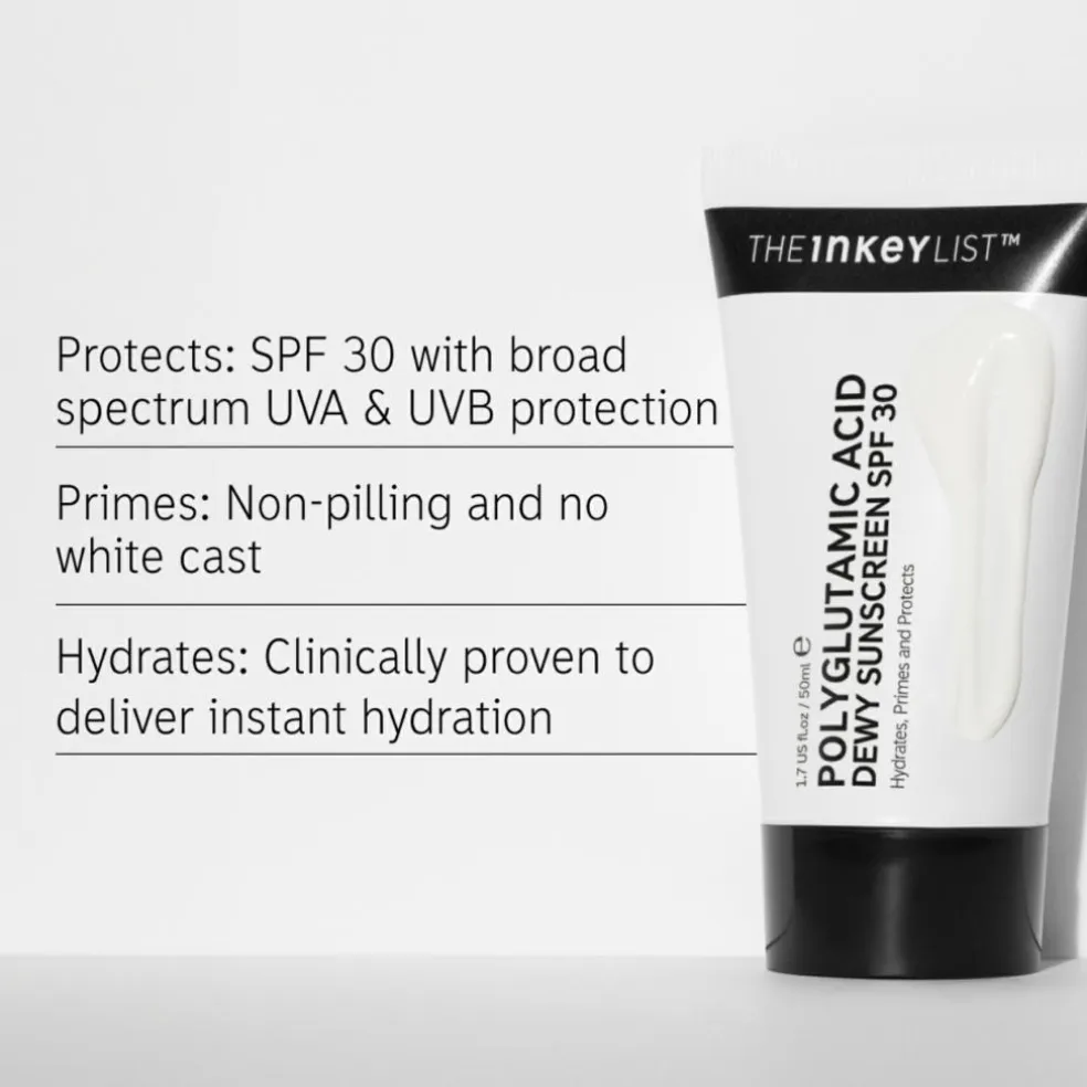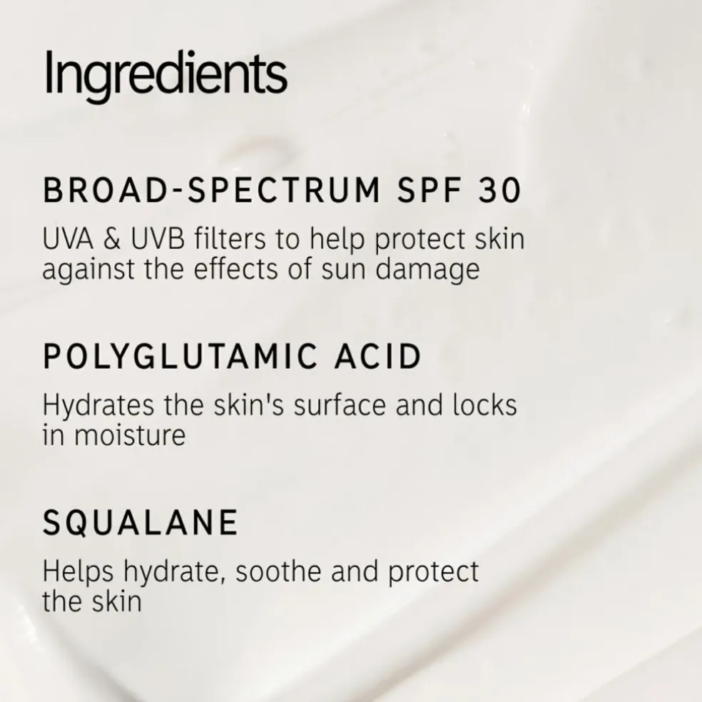 Beriget med hudplejende ingredienser, herunder en 8% fugtgivende trio, der kombinerer polyglutaminsyre, glycerin og squalane, hjælper det med at låse fugt og leverer et ultrahydrerende boost.