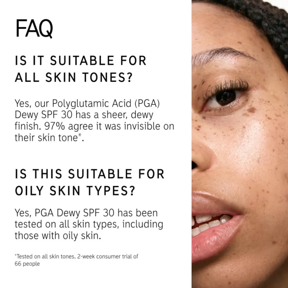 Med SPF 30-, UVA- og UVB-beskyttelse er denne lette solcreme formuleret til at fungere til alle hudtoner og smelter problemfrit ind i huden og efterlader en uopdagelig, lysende finish (97% sagde, at den så usynlig ud på deres hudtone*).