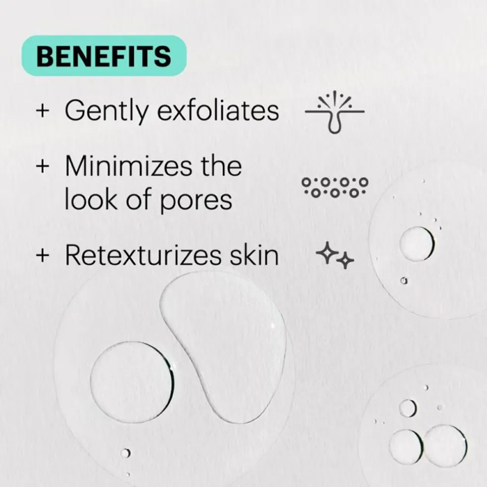 Et blidt tofaset serum med 7 % PHA, der udviklet til at hjælpe med at genoprette og udglatte huden og synligt formindske porerne uden irritation. Efter en uge fjerner den døde hudceller, mindsker hudorme og kontrollerer overskydende olie. Formuleret med PHA, en følsom hudvenlig kemisk eksfoliator med en stor molekylestørrelse, der ikke trænger så dybt ind i huden for at reducere risikoen for irritation. Panthenol hjælper med at holde på fugten, og macadamiafrøolie hjælper med at kontrollere talg uden at tilstoppe porerne. Testet af dermatologer. Velegnet til følsom hud.