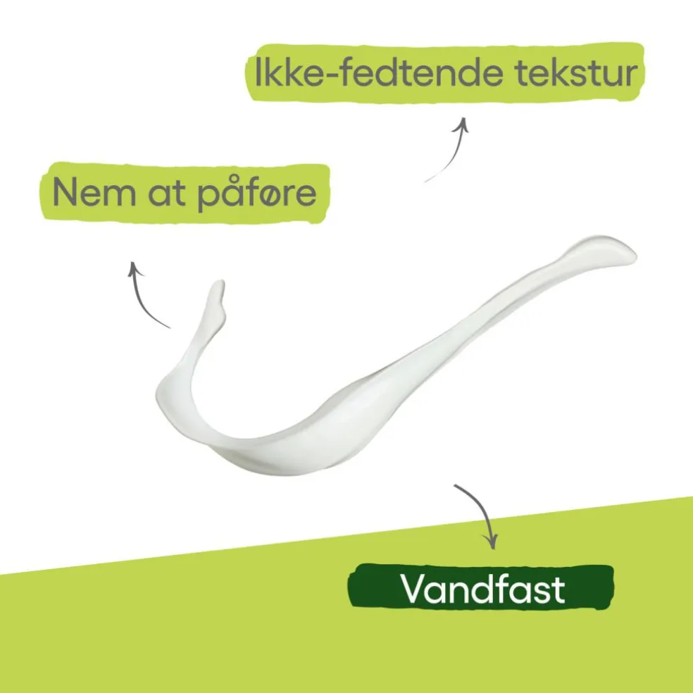 - Brug rigelige mængder og gentag påføringen ofte – især efter badning.
