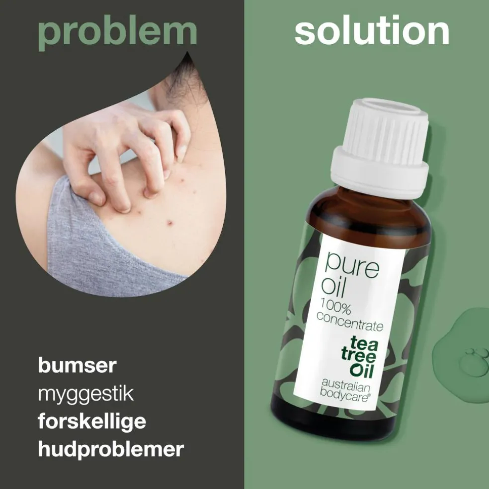 Tea Tree Oil er kendt for at modvirke bakterier og kan derfor bruges til en lang række hudproblemer. Olien bidrager samtidig til at bevare hudens naturlige bakterieflora, så den holdes ren og sund.