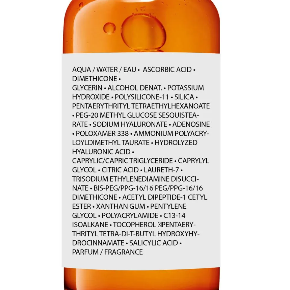 En unik formel med 12% Vitamin C, Salicyl syre, Neurosensine og Hyaluronsyre der giver fugt og hjælper huden med at forny sig selv.