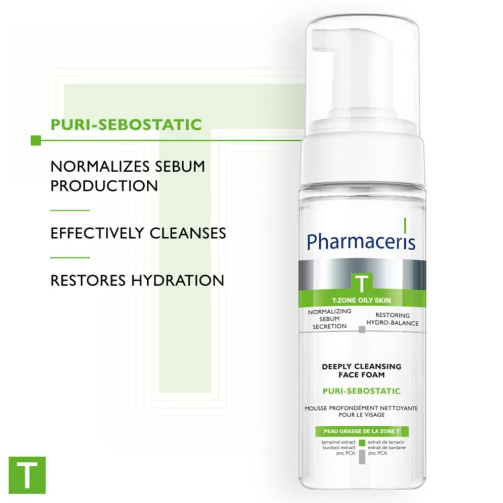 Påfør en lille mængde skum i håndfladen og rens ansigtet med blide bevægelser. Skyl derefter med vand. Følg derefter op med tonic og creme fra Pharmaceris T serien. Bruges om morgenen og ved sengetid.