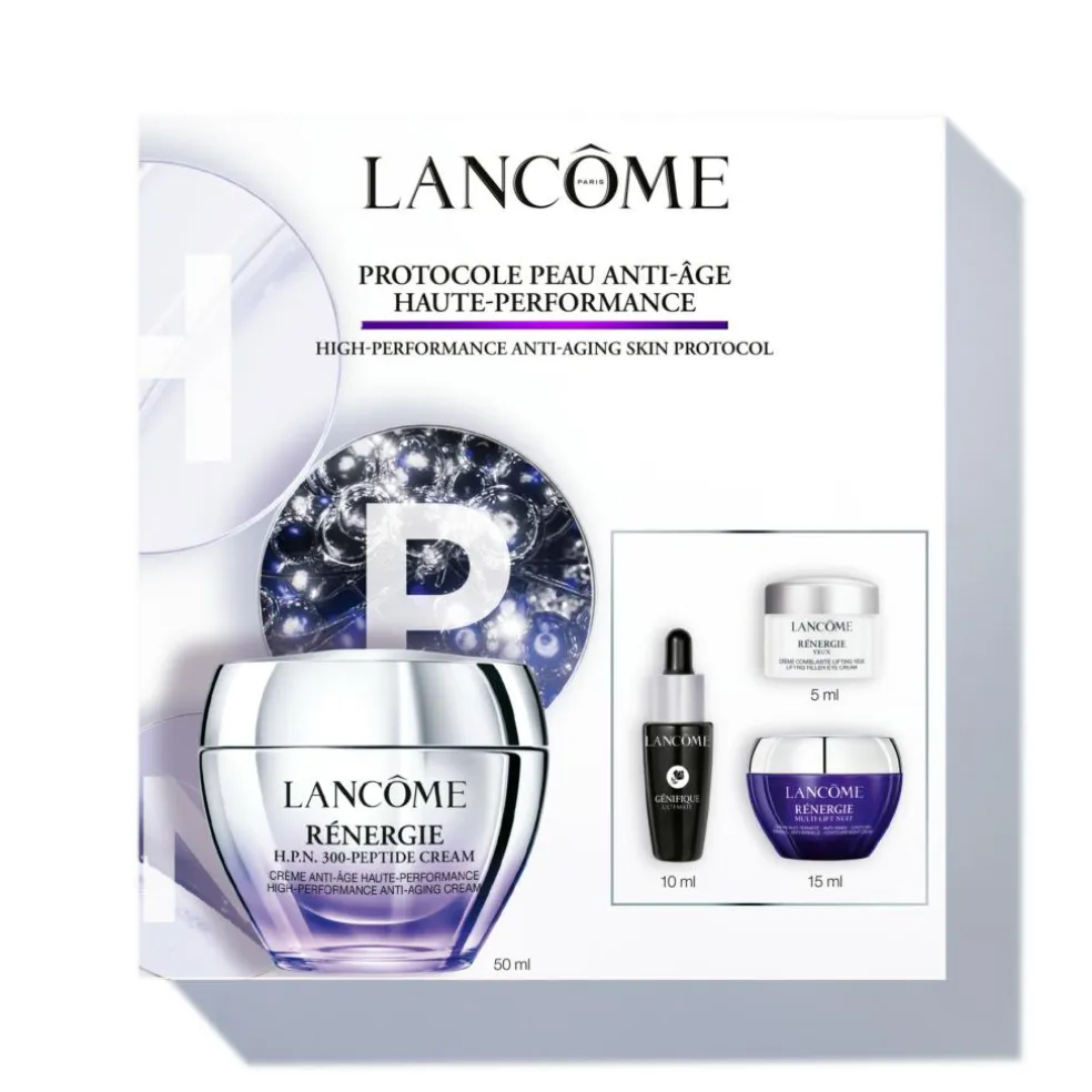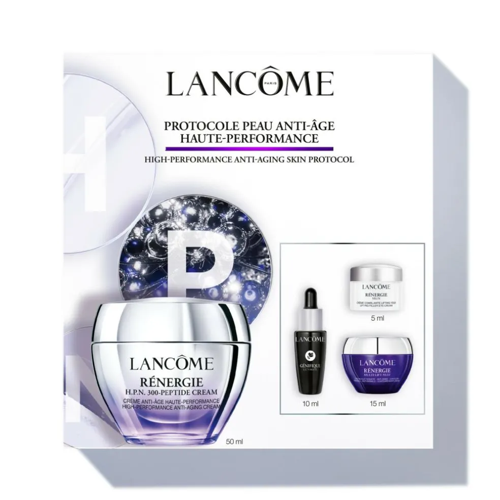 Rénergie H.P.N. 300-Peptide Day Cream er en effektiv anti-aging-dagcreme, som kombinerer 300 typer peptider – den højeste koncentration, Lancôme nogensinde har fremstillet. Advanced Génifique Serum styrker hudbarrieren, Rénergie Eye Cream plejer dit øjenområde og Rénergie Multi-Lift Night Cream fastholder Lancômes opstrammende teknologi, også natten over.