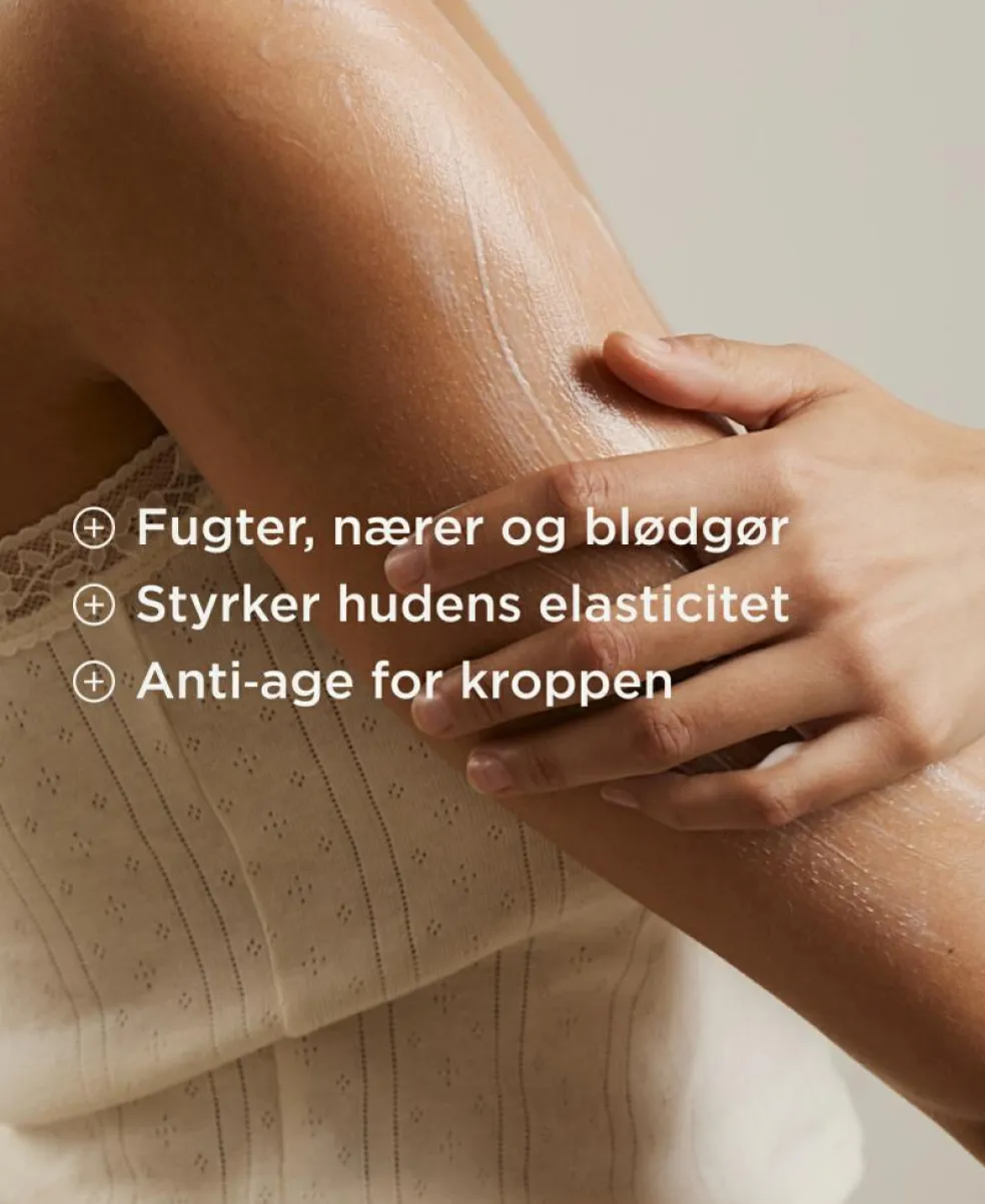 - Fugter, nærer, blødgør, forbedrer elasticitet og har anti-ageing effekt