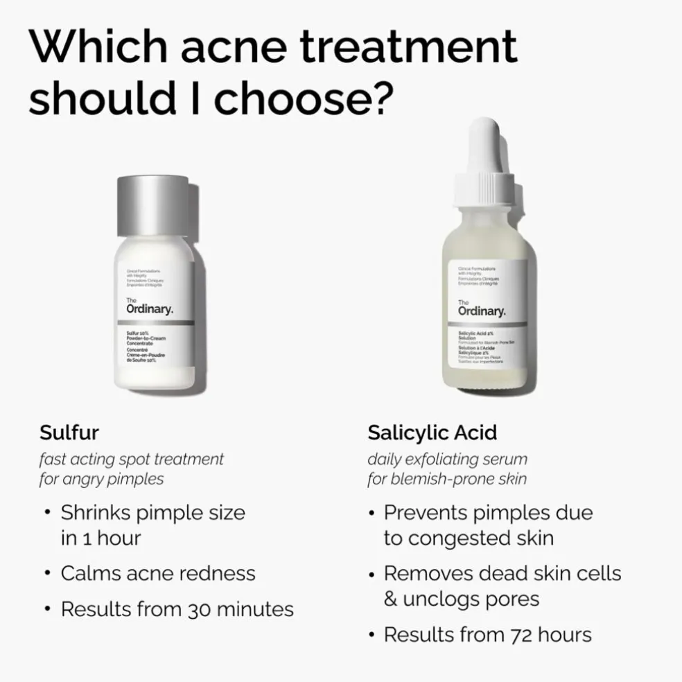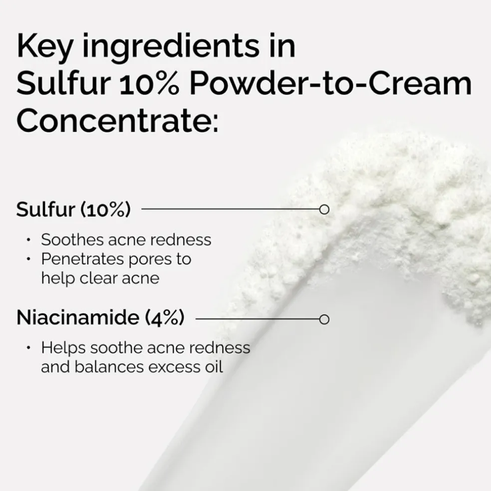 Behandlingen hjælper med at minimere forekomsten af udbrud ved påføring og giver synlige resultater på under 1 time. Formuleret med 10% svovl for at hjælpe med at lindre udseendet af pletter og udbrud. Svovl er en mild ingrediens målrettet urenheder, hvilket gør den ideel til dem med følsom hud. Formuleringen bruger kolloidalt svovl, som har en mindre partikelstørrelse for at hjælpe med at give effektiv levering.