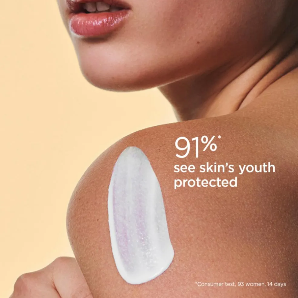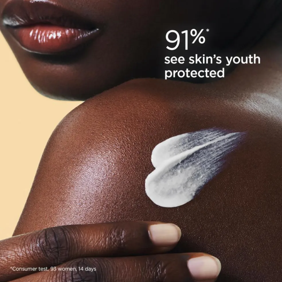 - Beskytter huden mod sol-fremkaldte ældningstegn, såsom linjer og mørke pletter
