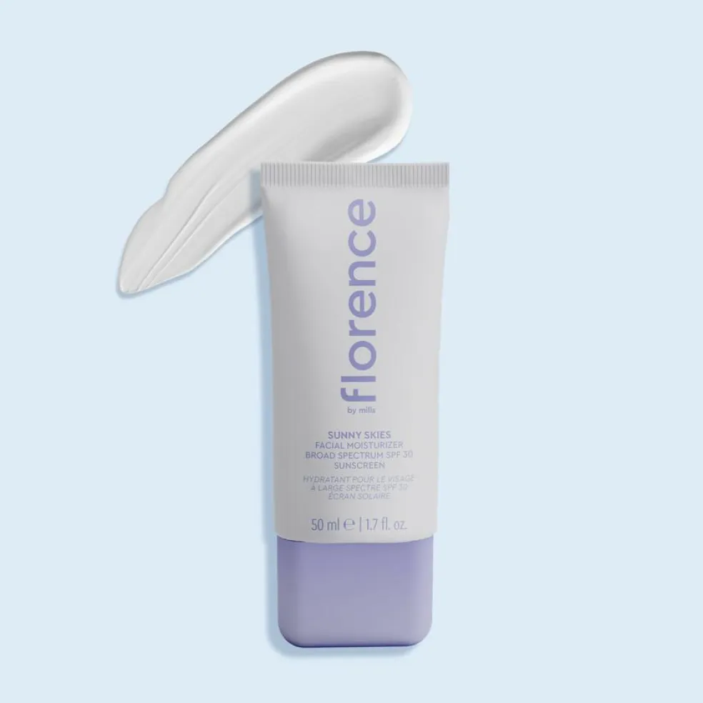 Sunny Skies Face Moisturizer Broad Spectrum SPF 30 Sunscreen har en let konsistens, der giver huden en jævn og glat finish uden en hvid eller synlig hinde.