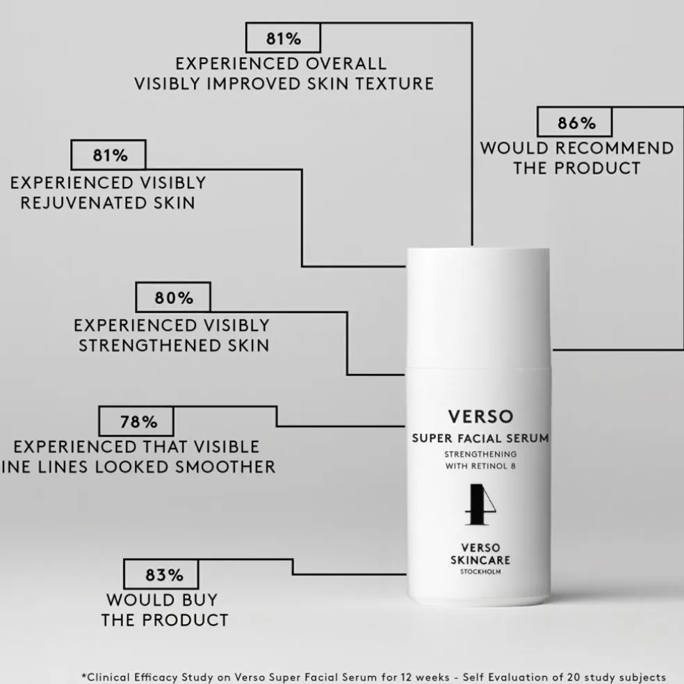 Super Facial Serum kan anvendes alene eller sammen med andre produkter som Verso Hydration Serum og/eller Verso Nourishing Cream for maksimal fugttilførsel.