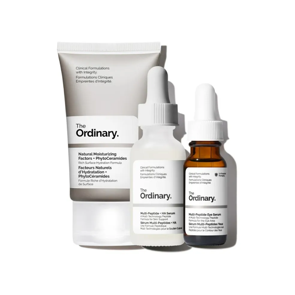 The Age Support Set indeholder et ansigtsserum, et øjenserum og en rig, fugtgivende creme, som minimerer forekomsten af fine linjer i ansigtet og ved øjnene, samtidig med at hudens elasticitet øges og fugten genopbygges. Det gør produktet: Multi-Peptide + HA Serum er et ansigtsserum, der er designet til at minimere forekomsten af tidlige tegn på aldring, herunder udseendet af fine linjer og følelsen af hudens elasticitet og fasthed. Det indeholder fire velundersøgte peptidteknologier samt hudvenlige aminosyrer og flere hyaluronsyrekomplekser og hjælper med at forbedre udseendet af rynker betydeligt samt forbedre hudens glathed. Multi-Peptide Eye Serum tilbyder en lignende multiteknologisk tilgang til alderstegn og er designet specielt til øjenområdet. Serummet hjælper med at reducere forekomsten af kragefødder og rynker under øjnene, øjenposer, hævelser og mørke rande, så øjenområdet ser lysere, glattere og mindre hævet ud. Nøgleingredienserne omfatter palmitoyltripeptid-38 samt en kombination af niacinamid og fraxinus excelsior-barkekstrakt. Natural Moisturizing Factors + PhytoCeramides er en rig, genopbyggende fugtighedscreme, der giver øjeblikkelig fugt. Den har en tredobbelt virkning mod tørhed ved at indeholde hudidentiske naturlige fugtfaktorer, fytoceramider og hudlipider. Når den påføres, giver den et øjeblikkeligt 68 %* boost i hudens fugt og styrker hudbarrieren for at holde huden hydreret hele dagen, mens fytoceramiderne hjælper med at forbedre hudens kvalitet, så den ser friskere og mere fyldig ud. For at bruge produkterne sammen skal du efter rens påføre et par dråber Multi-Peptide + HA Serum og massere det ind i huden. Følg op med en lille mængde Multi-Peptide Eye Serum omkring øjenkonturen. Afslut med en lille mængde Natural Moisturizing Factors + PhytoCeramides. *Klinisk test på 30 personer efter en enkelt påføring. Sættet indeholder: Multi-Peptide + HA 30ml Multi-Peptide Eye Serum 15ml Natural Moisturizing Factors + PhytoCeramides 30ml