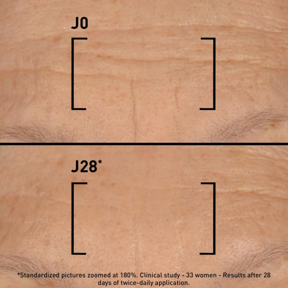 Tripeptid, hyaluronsyre, strandfennikel, vegetabilsk ekstrakt og en aktiv ingrediens, som hjælper til at give en fornyet struktur, korrigerer 5 forskellige typer rynker: mimiske rynker, dybe linjer, overfladiske linjer, halsrynker og spor af udtørring.