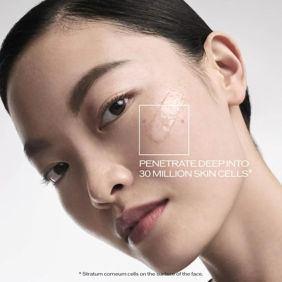 Test, 32 personer: udstråling, uensartet hud, fine linjer, hudtone, ansigtsrynker, fasthed, elasticitet.²Patenteret i Japan (Power Fermented Camellia+ fremmer CXCL9).³Forbrugertest, 107 personer.