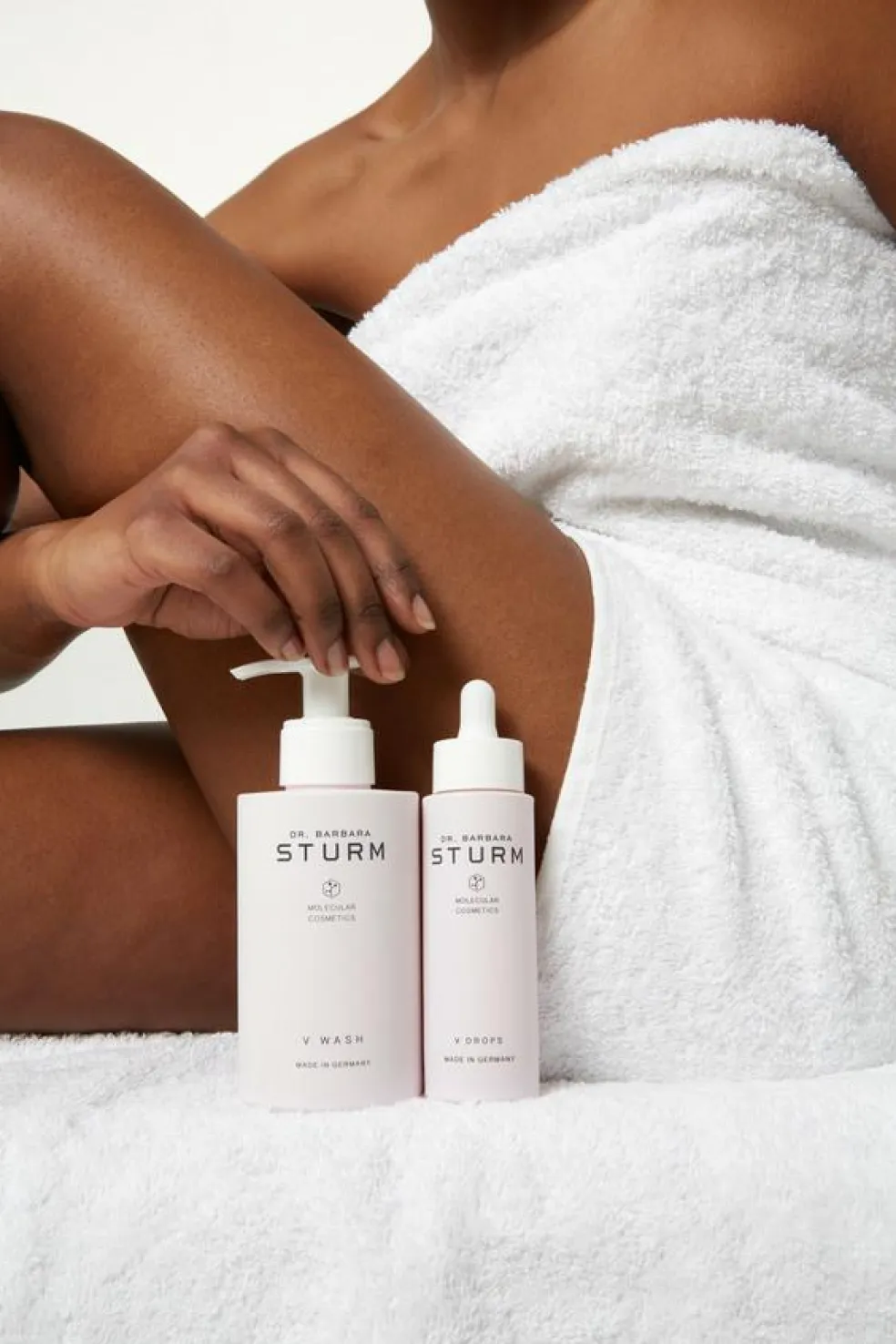 Huden skal være håndklædetørt inden påføring af Dr. Barbara Sturms V WASH.