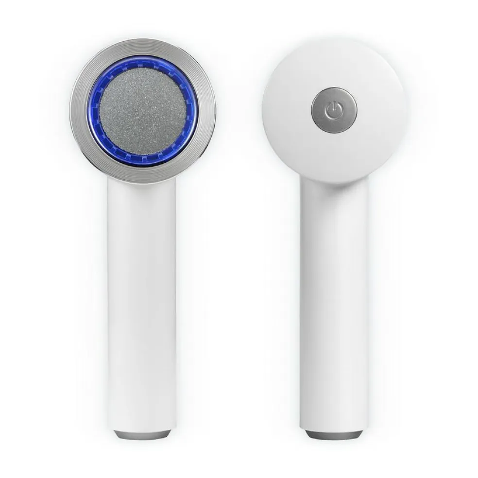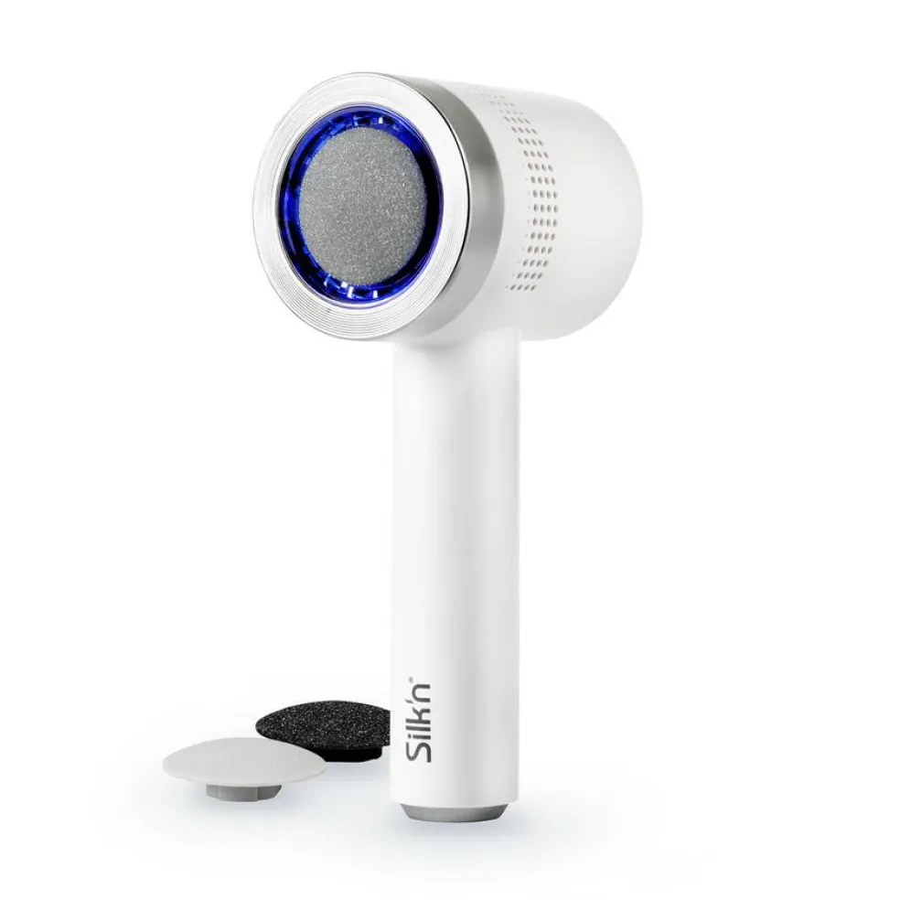 Ny: elektrisk hårdhudsfjerner med indbygget vakuumsystem Silk’n VacuPedi-hårdhudsfjerneren eller -fodfilen har en roterende slibedisk, der fjerner hård hud og tør hud fra fødderne meget hurtigt, sikkert og på en effektiv måde. Vakuumsystemet i enhedens hoved har et udskifteligt filter, der suger alle døde hudflager op på en effektiv måde og sikrer en hygiejnisk behandling. Dermed slipper du for smuds på gulvet, eller at hudflager flyver rundt. Du vil kunne få glæde af dejligt bløde fødder inden for få sekunder! Op til 1.550 vibrationer i minuttet Denne hårdhudsfjerner har 2 hastighedsindstillinger: lav og høj. Med op til 1.350 vibrationer i minuttet i den lave hastighedsindstilling og op til 1.550 vibrationer i minuttet i den høje hastighedsindstilling sørger Silk’n VacuPedi for, at dine fødder hurtigt bliver bløde og glatte. Hold blot enheden mod den tørre, hårde hud i et par sekunder for at file den sikkert. Takket være dens ergonomiske design er enheden både brugervenlig og smertefri at bruge. Det har aldrig været nemmere at fjerne hård hud. Genopladelig – så ingen behov for batterier! Silk’n VacuPedi-fodfilen er genopladelig, så du behøver ikke nogen batterier. På en fuld opladning kan du bruge den i op til 110 minutter. Genoplad din VacuPedi via din computer eller en stikkontakt ved hjælp af det medfølgende USB-kabel og USB-vægadapteren. Dermed kan du altid være sikker på at have en effektiv enhed ved hånden, som tager sig af dine fødder uden besvær og uanset situation, uden at du behøver købe nye batterier. Inkluderer 3 slibeskiver og 3 filtre Der følger 3 slibeskiver og 3 filtre med din Silk’n VacuPedi. Slibeskiverne gør huden blød og jævn. Montér blot én af slibeskiverne på enheden, og lad enheden udføre dets magiske arbejde. Du kan vælge mellem Fin, Medium og Grov. Filtret samler de døde hudflager. Du kan vaske og udskifte dette filter med jævne mellemrum. Nye filtre og slibeskiver sælges separat via www.silkn.eu.