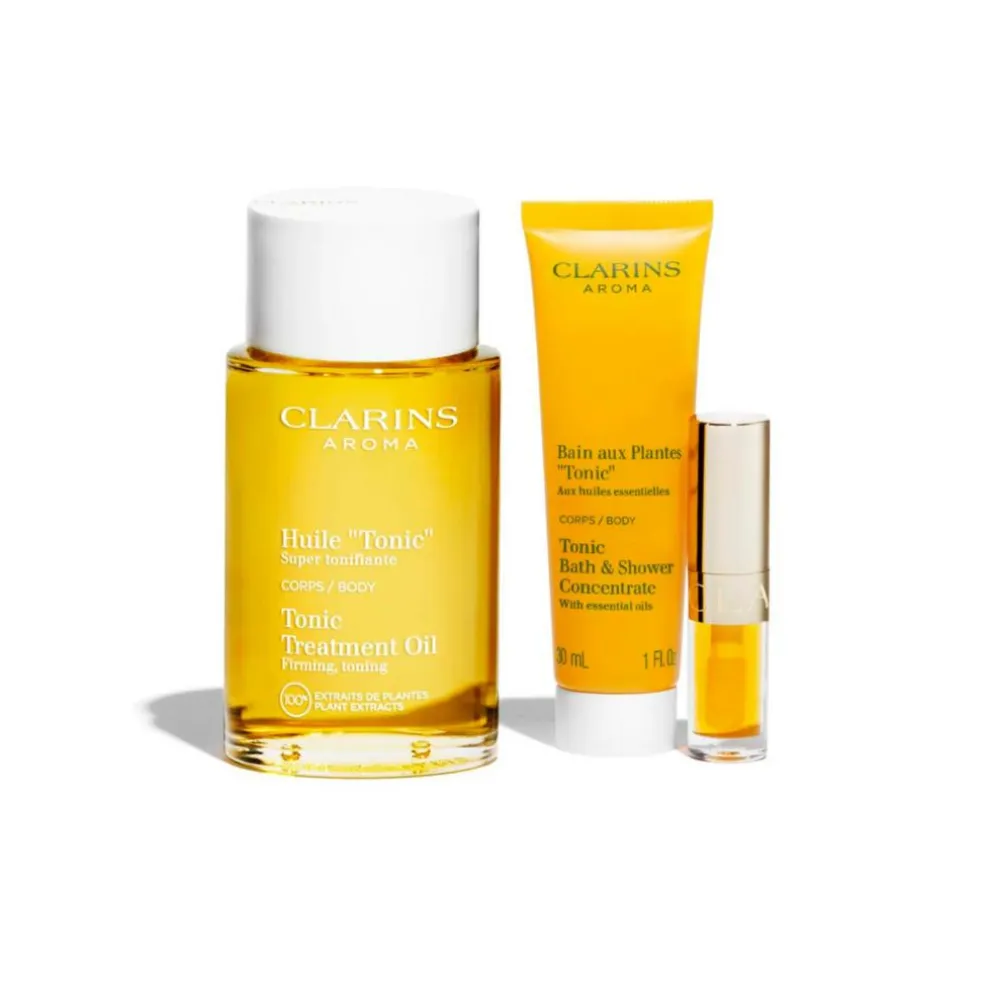 Clarins’ to Aroma hudplejeprodukter med essentielle olier hjælper med at opstramme og forbedre huden, mens de stimulerer krop og sind: en opstrammende rens og den ikoniske Tonic Treatment Oil.