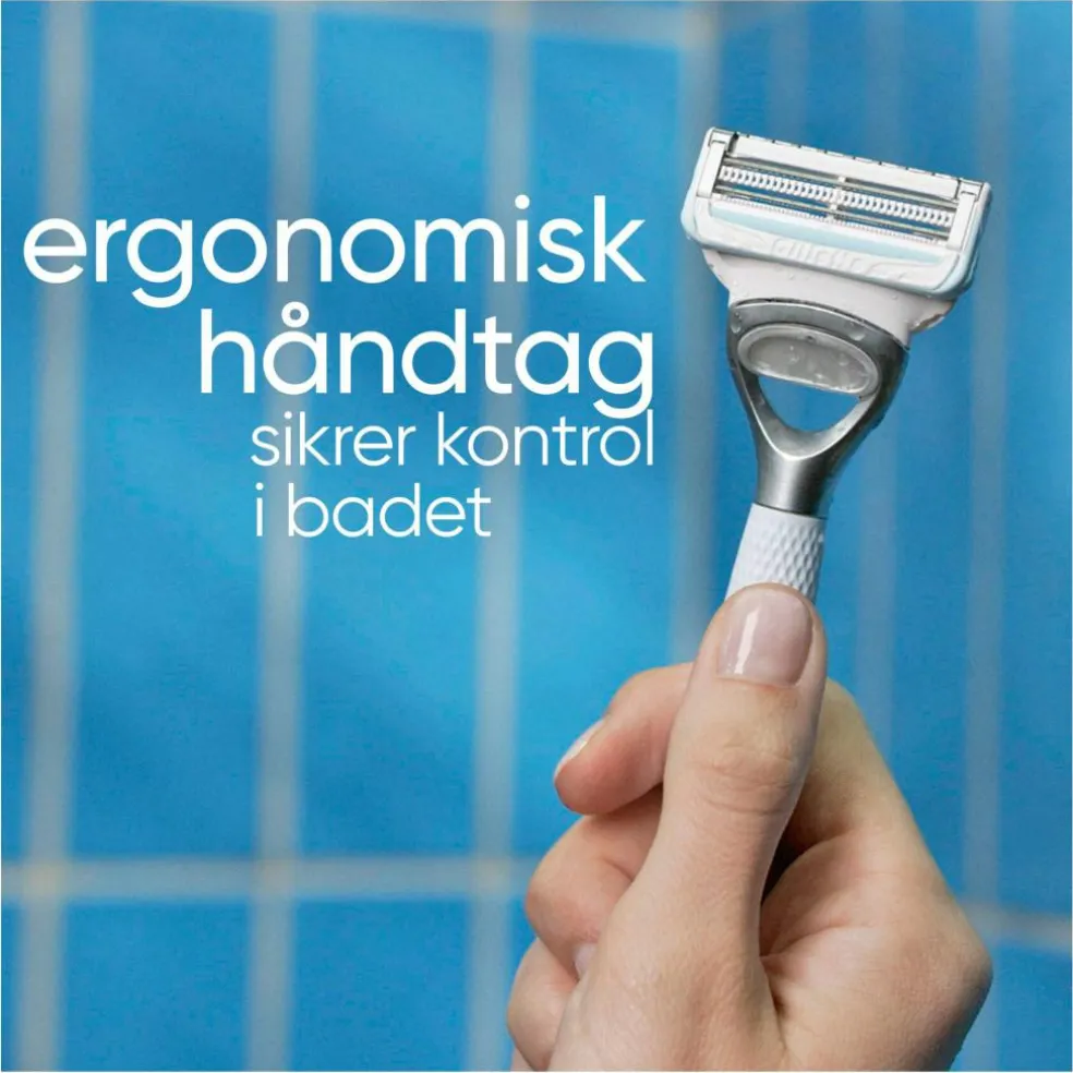 Desuden er barberbladsrefillerne udstyret med en præcisionstrimmer bag på bladene, der hjælper i besværlige områder.