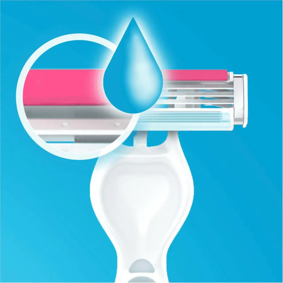 - Engangsskraber til kvinder med 3 blade og fugtgivende strimmel, der får skraberen til at glide lettere