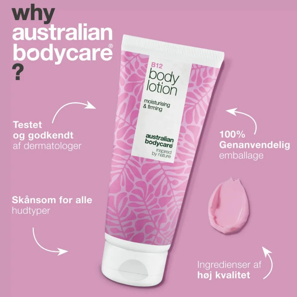 For at få mest muligt ud af din B12 body lotion, anbefaler vi at bruge den sammen med andre B12 produkter fra Australian Bodycare, såsom vores B12 bodyscrub, der blidt eksfolierer huden og forbereder den til optimal optagelse af fugt.