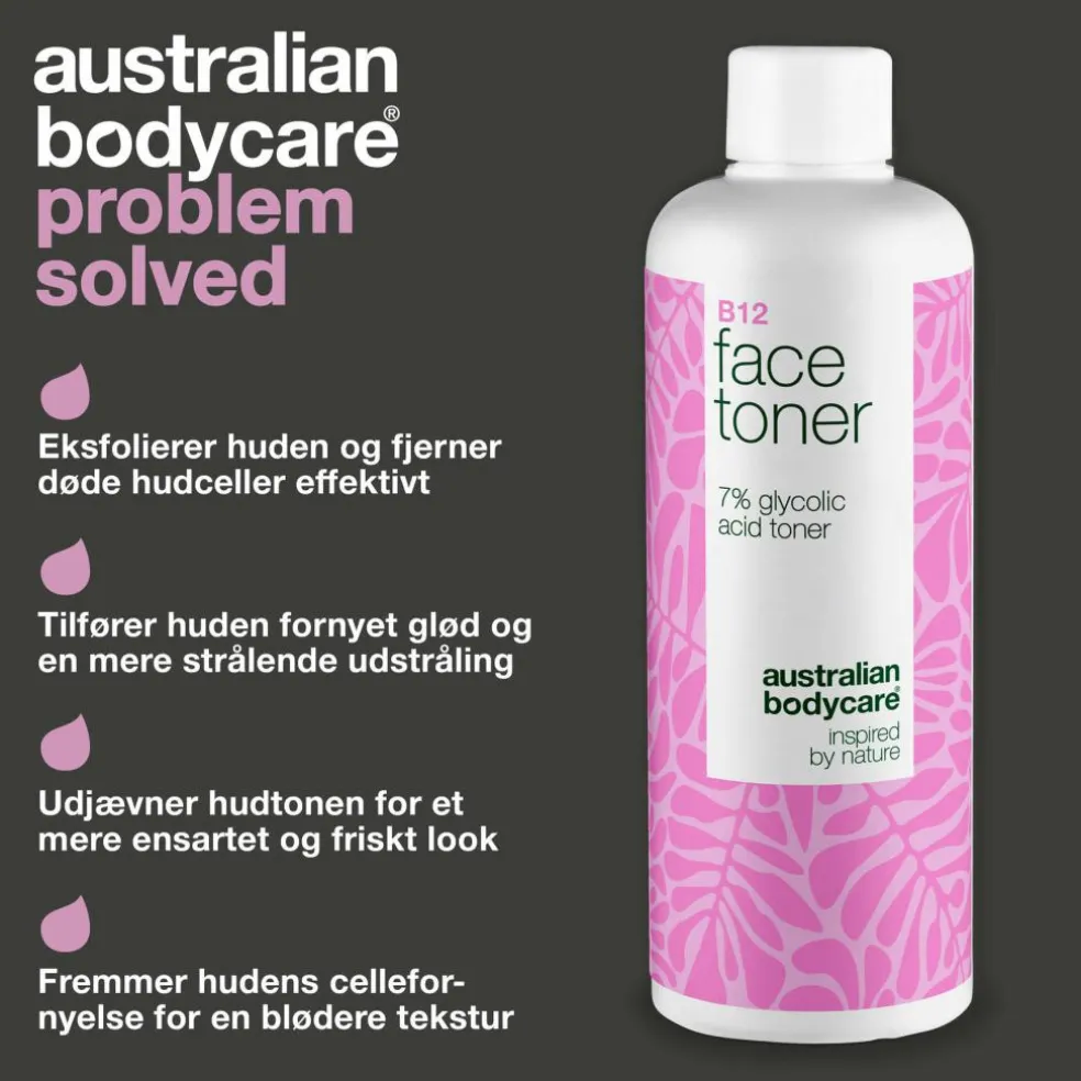 For at opnå det bedste resultat anbefales det at kombinere B12 Exfoliating Toner med andre produkter fra Australian Bodycares B12-sortiment.