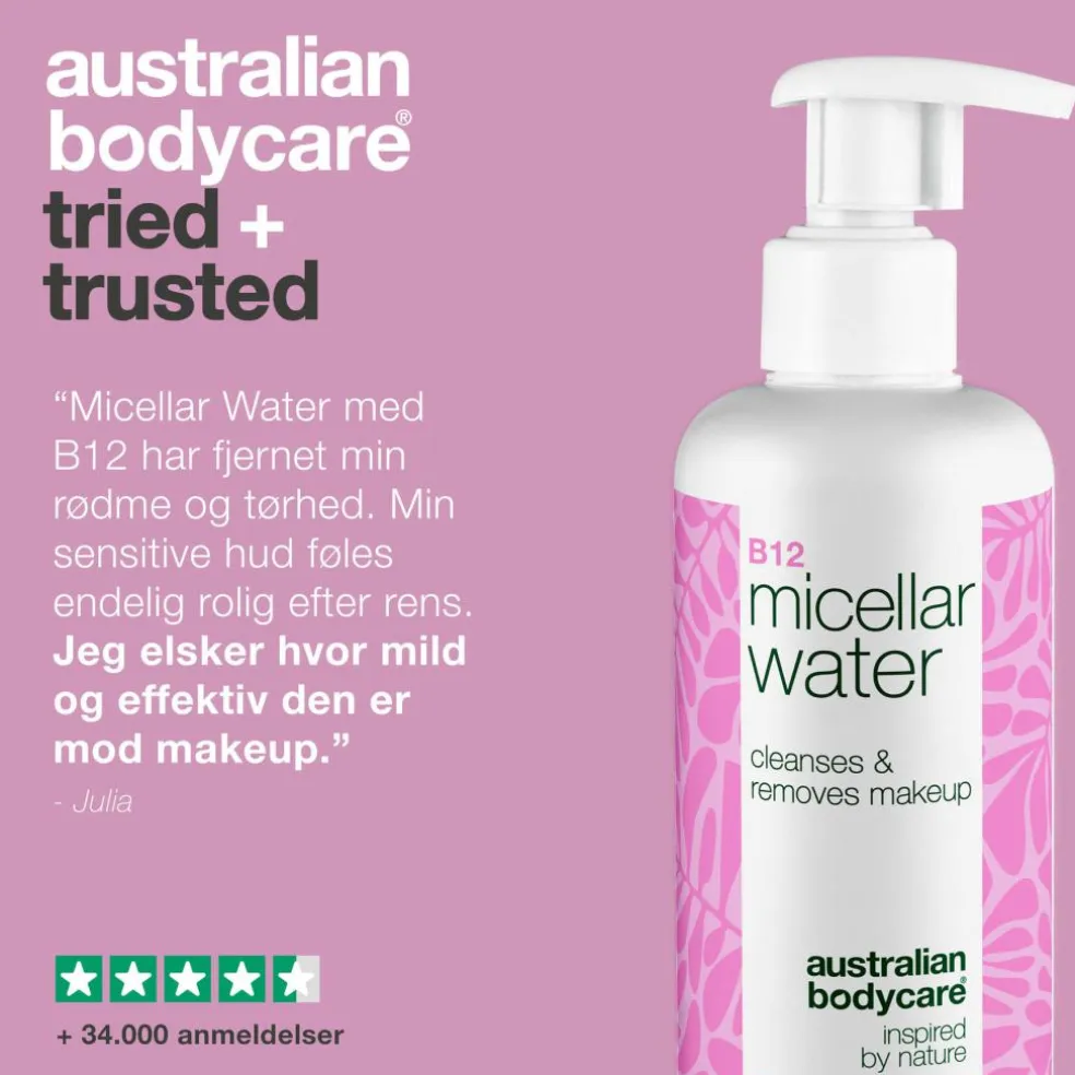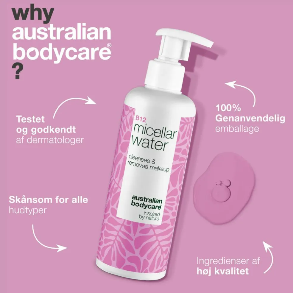 For at opnå optimal effekt anbefaler vi at kombinere Micellar Water med vores andre produkter til sensitiv og tør hud – f.eks. en beroligende ansigtscreme eller fugtserum fra Australian Bodycare. På den måde støtter du huden hele vejen gennem din rutine og sikrer et sundt, balanceret resultat.
