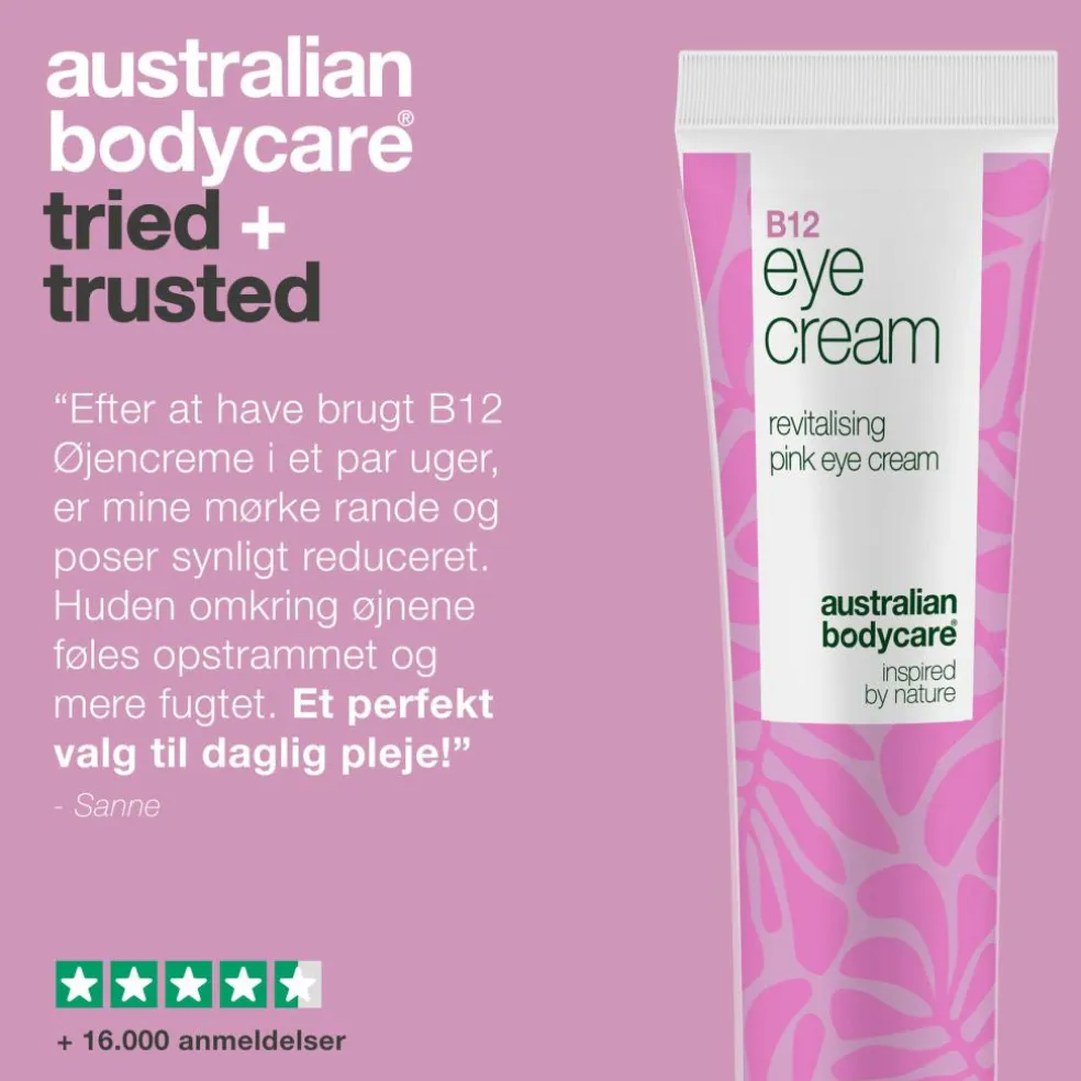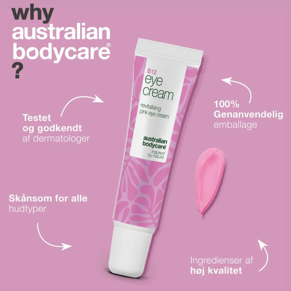 Få det maksimale ud af din øjenpleje ved at kombinere B12 øjencreme med andre produkter fra Australian Bodycare. Brug den sammen med vores ansigtsserum eller fugtighedscreme for en komplet hudplejerutine, der nærer og beskytter din hud hele dagen.