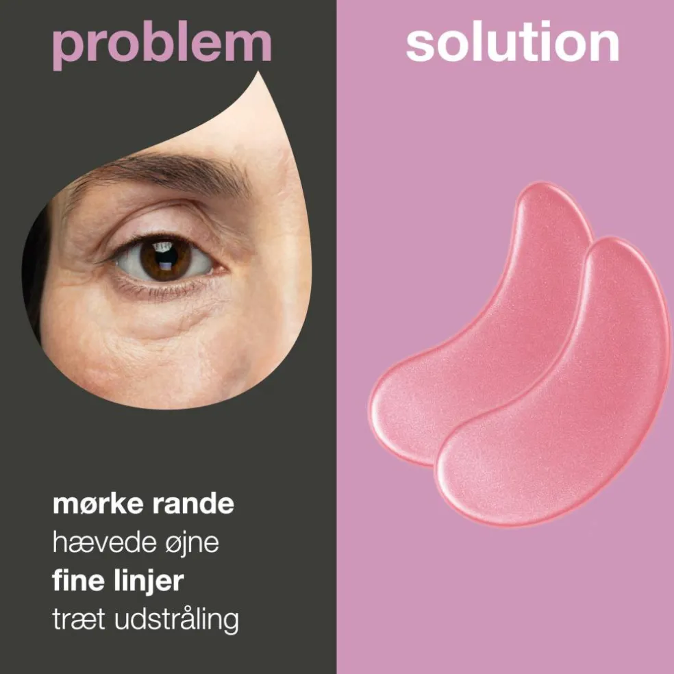 - Placer et patch under hvert øje og lad virke i 15–20 minutter.