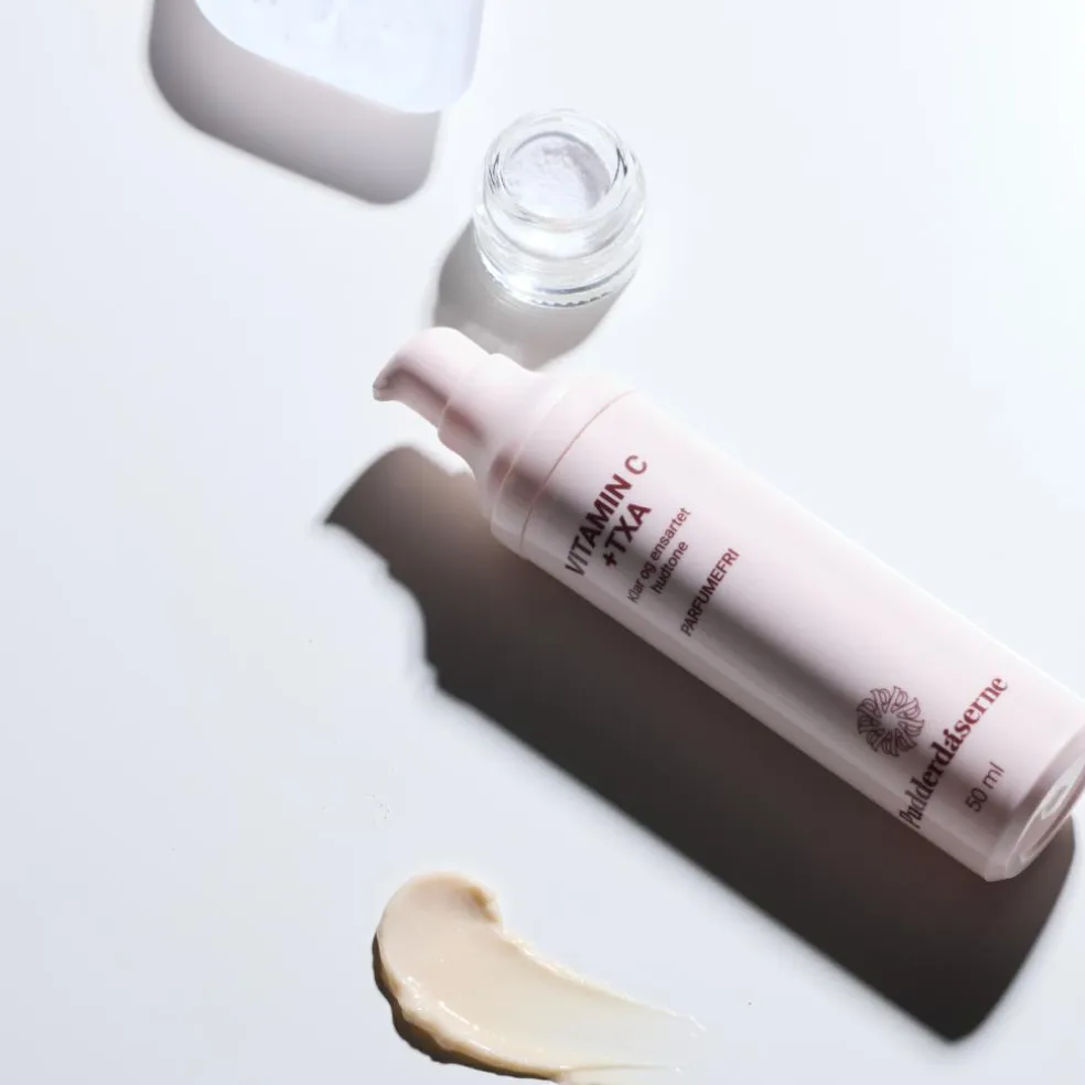I VITAMIN C + TXA er der kombineret en særlig stabil form for C-vitamin med blandt andet tranexamsyre og phenylethylresorcinol, der tilsammen forbedrer hudtonen og bidrager til en naturlig, jævn glød.