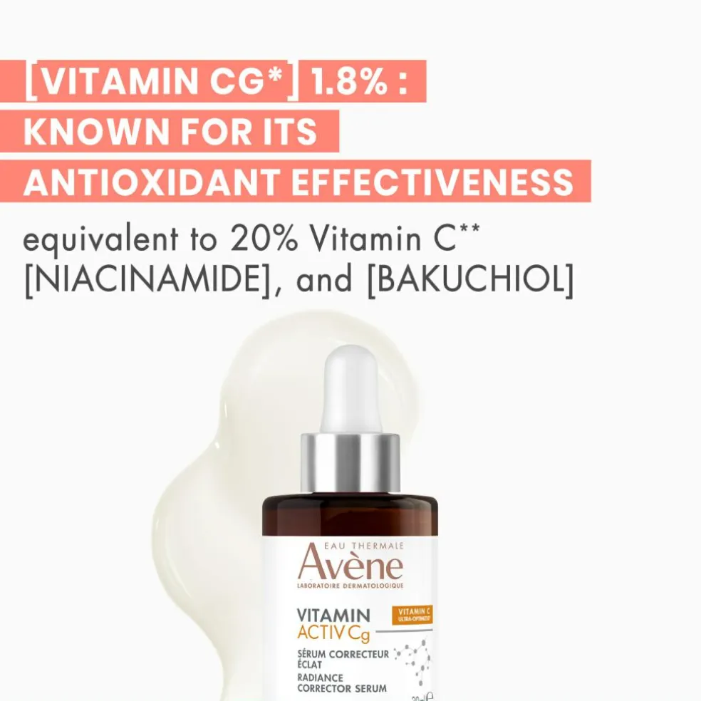 Avène Vitamin Cg Anti-Age Radiance Serum er et effektivt anti-age serum, der giver huden glød, reducerer synlige rynker og mindsker mørke pletter.